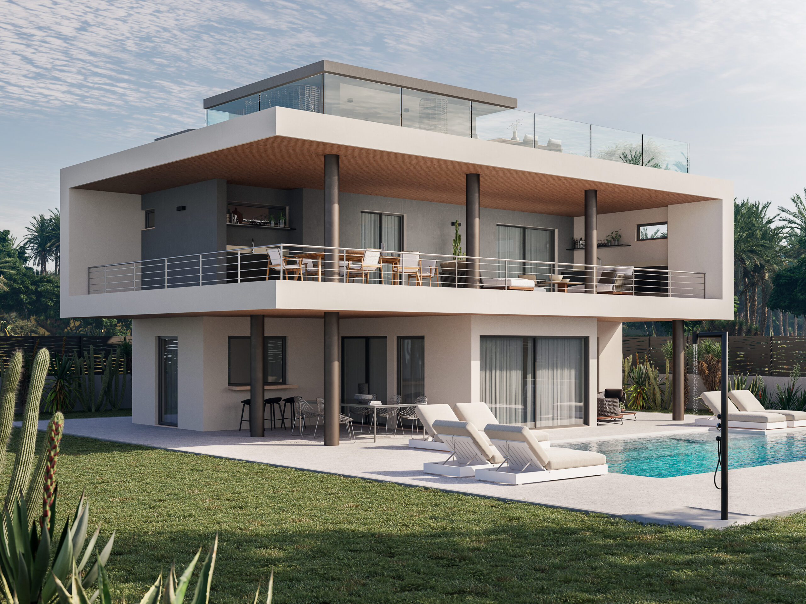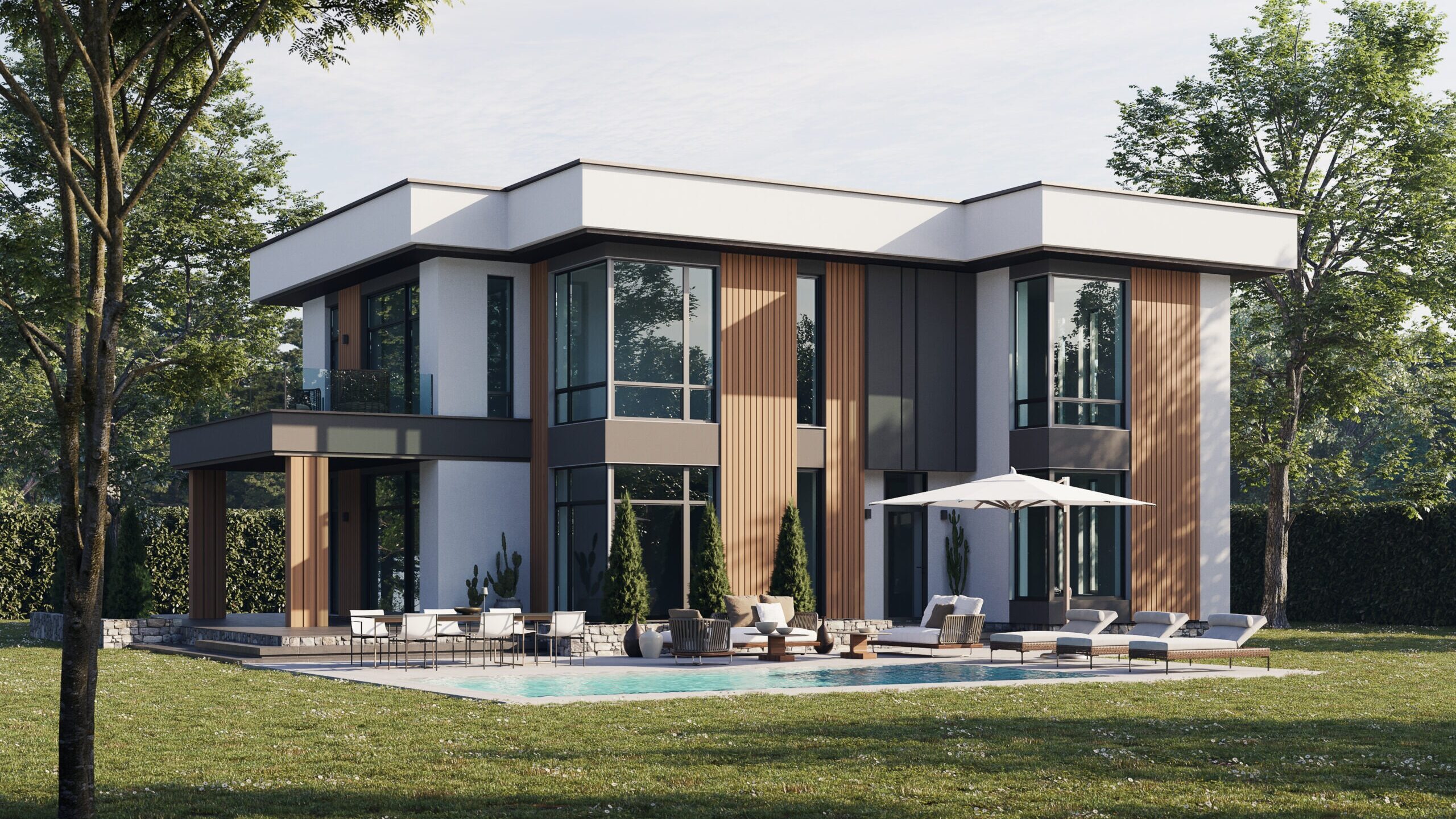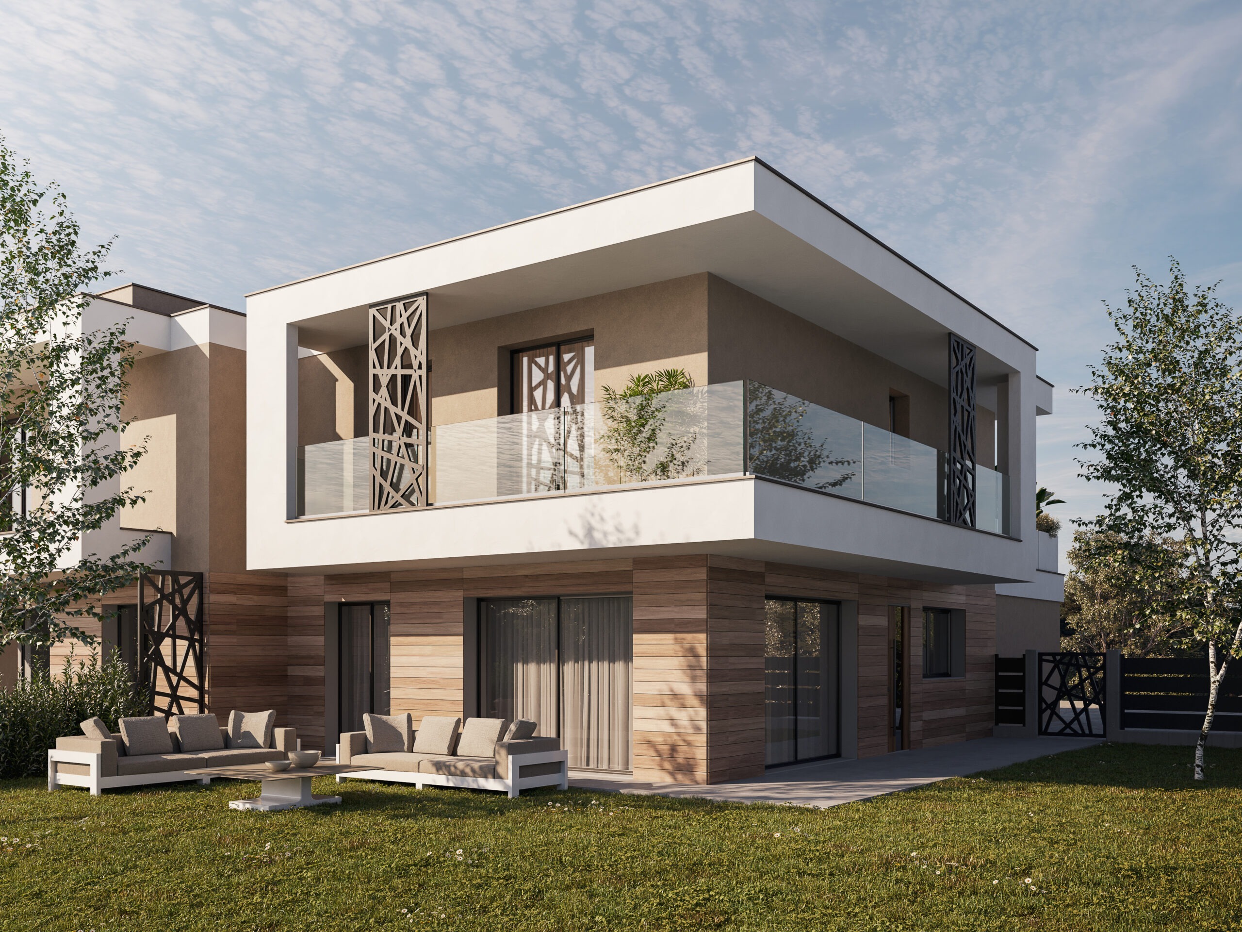 Trasformiamo i tuoi progetti architettonici in immagini mozzafiato con rendering esterni fotorealistici.